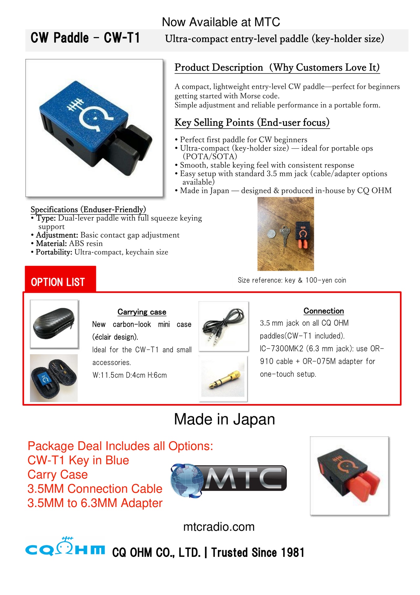 CW Paddle Package by CQ-Ohm. Made in Japan